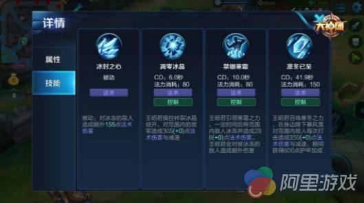 加点方面,1技能凋零冰晶作为王昭君的主要输出技能,可以方便她清兵以及远程消耗敌方英雄,推荐主升;2技能禁锢寒霜作为一个控制技能,推荐辅升,有大点大。