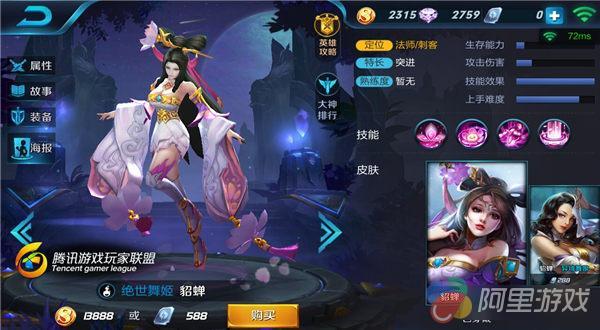 貂蝉作为一个很老的英雄,风范依旧不减当年,玩的飘逸的貂蝉可以在团战中打出成吨伤害,以至于收割全场。但是貂蝉防低血薄,生存能力需要使用装备来弥补,进场时间一定要找准,避免开场被控秒,那样很尴尬。