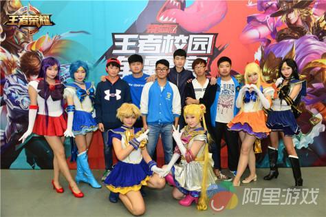 南京站赛事与往期赛点最不同之处在于,其完美实现了动漫与电竞的互相结合,相互渗透。在赛事现场,多名高校女学子突破次元壁,化身为在大学生群体中认知度非常高的“美少女战士”为赛事助兴。赛场开放后Coser一经亮相便立刻受到了诸多选手、观众的高能关注,不断被邀请合影互动。“代表月亮消灭你”,也成为南京站赛场中出现率最高的台词。看着参赛学子们专注的参赛表现,水冰月姐姐更是抵挡不住王者荣耀的电竞魅力,与其它美少女战士五黑开团,开心获胜!