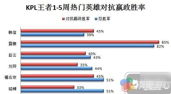 在KPL各大热门英雄中,嬴政对抗貂蝉、橘右京、刘邦、赵云都拥有不小的优势,嬴政超远距离消耗与快速的清线能力是对付他们的法宝,改版后嬴政的二技能变为固定加法强,让嬴政的前期作战能力更加强大,输出环境相比于貂蝉更好,当然嬴政也有弱点,脆弱的身板和技能的固定性让他惧怕拥有超高强杀能力与高速位移的英雄,韩信与李白这种高机动性的英雄对抗嬴政都有较高胜率,王者荣耀第一女人露娜例外,作为王者荣耀唯一的BUG,KPL中露娜的胜率到达了恐怖的82%,对嬴政这种没有位移的英雄更是达到85%的胜率,太过强大,露娜核武器不加入我们分析。