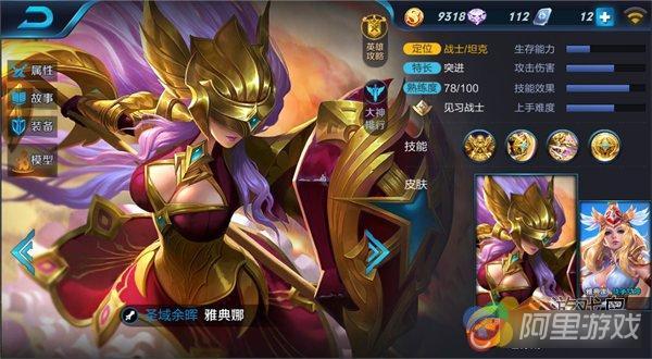 雅典娜在刚刚登场王者峡谷的时候是相当的冷门,因为雅典娜虽然官方定位是战士/坦克,但是她的生存能力并不像其他坦克英雄那么强,更像一个生命力比较高的战士,但是她拥有很高的机动性,技能连招性能很强,虽然前期比较弱势,但是在后期真的很强,她能像羚羊一般跳跃在战场上,靠一二技能不断的追着敌人不放,驰骋在战场上的女武神才符合雅典娜历史上战争女神的名号,所以我们要把她当做一个高操作的战士来玩,而不是当做一个纯坦克来玩,雅典娜初始生命值非常低,所以在前期想要存活下来就要猥琐发育,第一件装备出红莲斗篷提高自己的生存能力,到中期出雅典娜操作性的核心装备,冰脉护手,出了冰脉护手之后雅典娜的对战能力就大大提升了,二技能强化后的普攻再配上冰脉护手的减速效果,基本上是抓谁谁死。