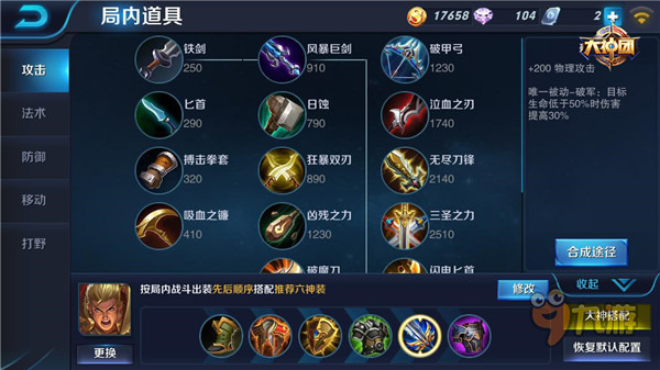 半肉核心装备:红莲之凯、军团荣耀、振兴之凯、破军