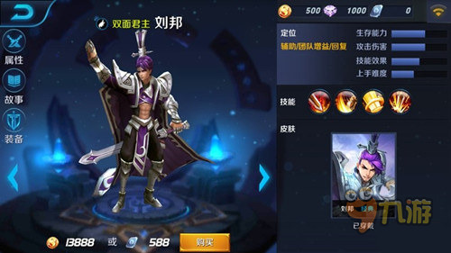 刘邦是一位拥有强大支援能力的坦克,他的大招是游戏中第一个全图传送技能,能够让刘邦从任意位置传送到队友身旁。善用这一能力,能够为队友制造以多打少的局面,救助危险中的队友甚至完成反杀,也能够让刘邦在放心带线刷野同时又在危急时立即回到队友身边加入团战,从全局上牵制敌人。刘邦也是一位能够从血量上获取双重收益的英雄,他的主要输出技能伤害会受到血量上限加成,这使刘邦在提血量堆身板的同时,也能够提高输出能力。