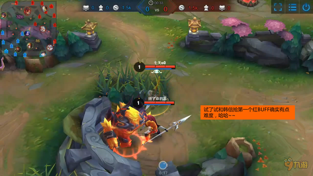 拿完红BUFF后又杀了一个小野,升到2级后上线,想抓一波,结果对面也有人来支援,就后撤了!