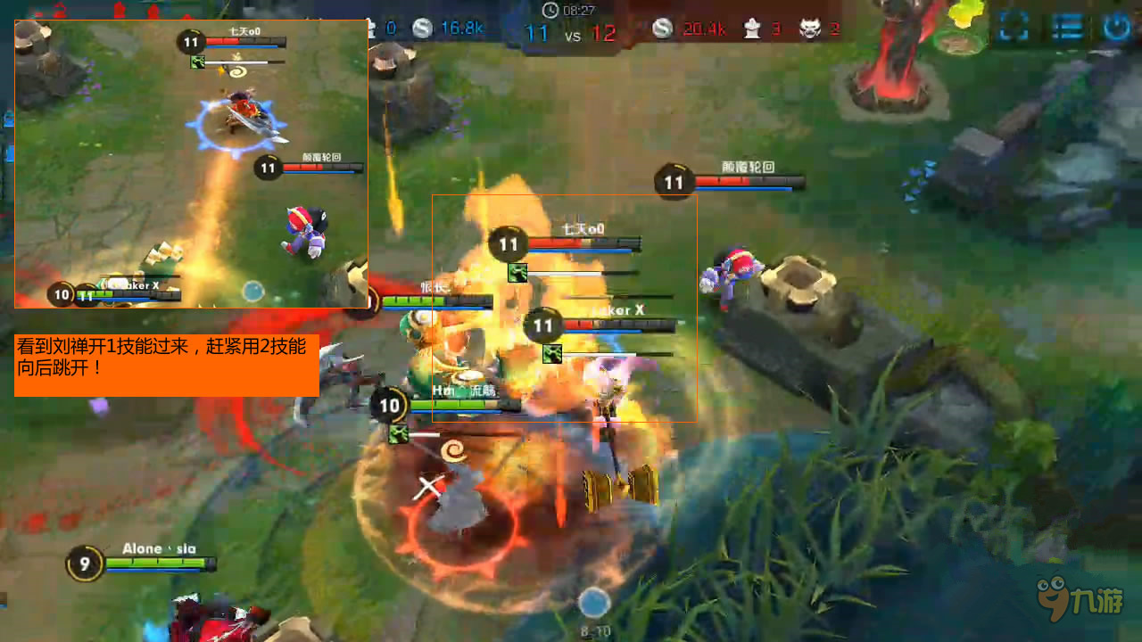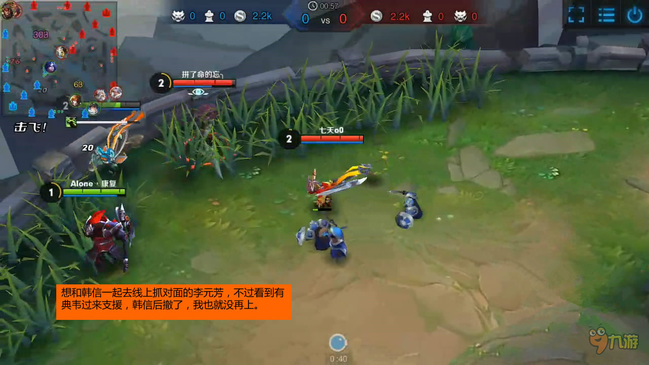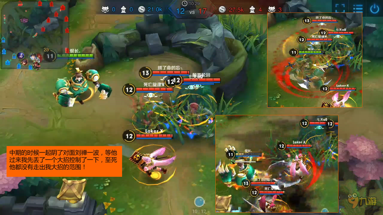 这里要提醒大家在中后期的时候,如果在线上看不到对面的人,一定要小心,遇到草丛要先探查一下再靠近!