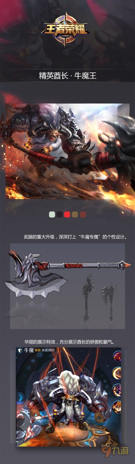 经过长时间的数据观察,从各个渠道收集了大量玩家的反馈后,我们做出了重新设计牛魔的决定。新的牛魔,仍然具有强大的保护能力,同时在进攻端会更加具有侵略性。毁天灭地的大招虽然有着较高的释放难度,但一个完美的大招就是敌人团灭的前奏。