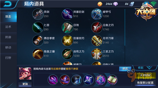 六神装:时之预言,博学者之怒,秘法之靴,虚无法杖,回响之杖,贤者之书。