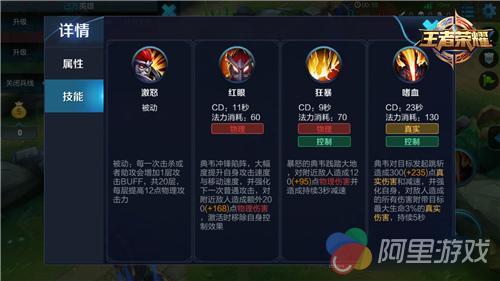 典韦的被动相当于有了一件能持续增长攻击的装备,当击杀和助攻击杀敌人的时候,会增加攻击,20层被动的典韦即使不出攻击装,伤害也不低;而1 技能使用后可以增加攻速和移速,最最重要的是,他能解除控制技能,团战时非常给力;2技能可以减速,是个范围技能,适合团战和追击敌人使用,大招可以造成真实伤害和减速效果,团战时给敌方输出来一个,够他喝一壶了。
