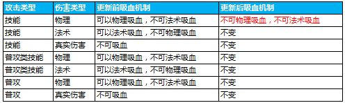 其中物理技能再也不能吸血了,也就是说除了使用普攻以及普攻类技能吸血外,就再也没有其它吸血方式了,在此让我们向小身板的刺客们致以最诚挚的默哀!