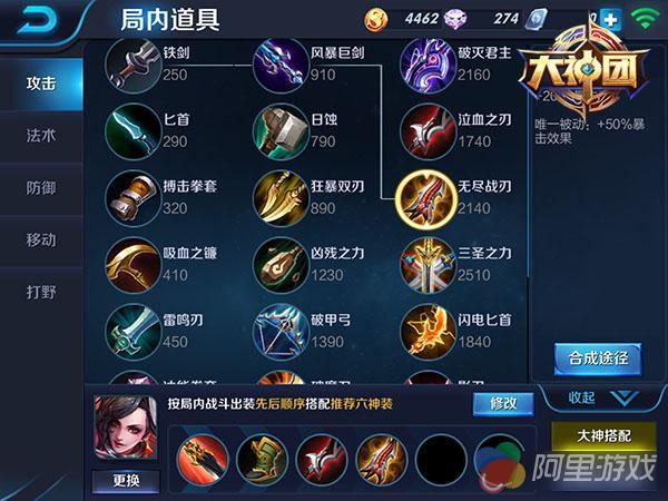 再一把泣血之刃可以提高荆轲吸血率,同时提高其消耗能力,可以跟坦克英雄慢慢磨血,进攻时尽量不使用大招,以免脆皮输出一来无法躲避。破甲弓出了更容易击杀坦克外,也提升了荆轲的攻击力。