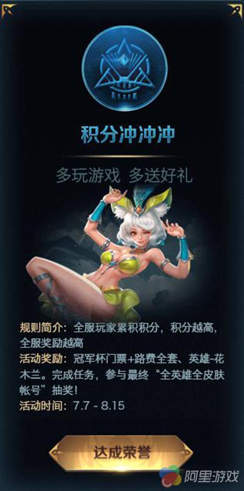 7月23日,王者荣耀冠军杯暨暑期盛典就将举办,七大线上助阵活动会在近段时间内先后开启,今日七大活动之“积分冲冲冲”正式启动。为了积分为了奖励,更为了全皮肤全英雄账号,《王者荣耀》值得所有召唤师“无处不团,你也在玩”!