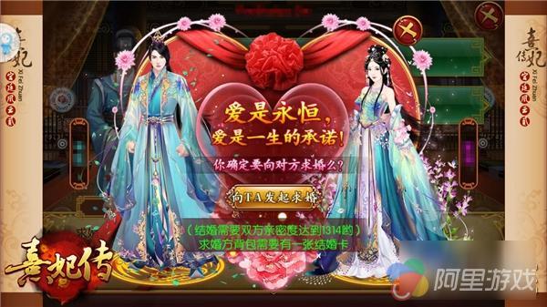 鲜花攻势后,如果妹子有所回应,那么恭喜你,基本已经脱离单身狗行列。在《熹妃传》的宫中,这神圣的最后一步就让婚介中心的小卫子来帮你解决吧,玩家您只需带上一张结婚卡和一颗诚挚的心前去便可,贴心的小卫子会将您的求婚心意传达给她,接下来就静静等待妹子的回答,准备开启宫廷新篇章吧。