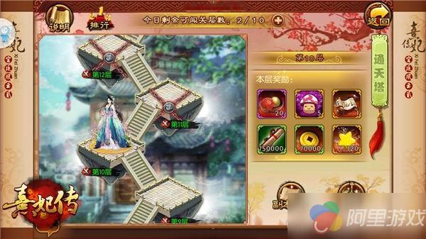 通天塔与九合塔并称宫中的千寻双塔,由毛大毛二镇守。与九合塔不同,通天塔玩法更为简单粗暴,一次性的挑战试炼不可重置,小主们无法后退只能向上攀爬,最求更高层数。小主们每日可免费通关10层通天塔,可别觉得次数太少,通天塔层层难度递增,即使失手战败也能够再次挑战而无次数限制。对于热衷研究战法阵型的小主们来说,通天塔是个绝佳的试炼之处。