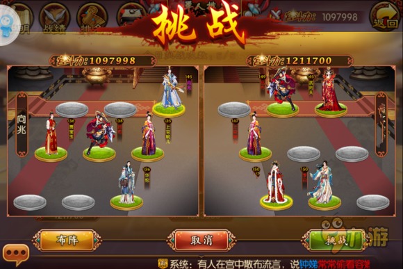 这个阵型是过步步打我们服第一名的侍卫,宫斗高我10W。李白8W攻击,侍卫9W多攻击7W多防御。