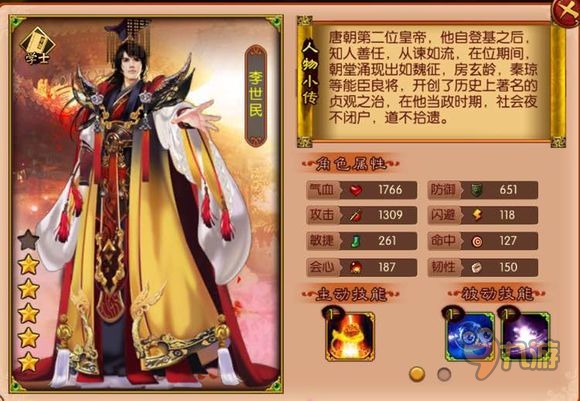 李世民主技能加的是最大攻击和最大防御,意思就是在面板看到的攻击和防御上加成的,而不是基础属性加成,这是非常非常重要的一点。