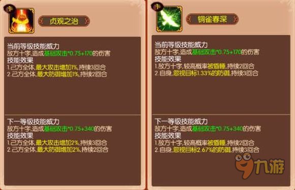 大乔的技能成长是每级1.33%,而李世民只有1%,这就意味着同样满主技能,大乔可以无视59.85%的防御,李世民给全体加47%的攻击47%防御。比如面板8w攻击的李世民,加成45%之后,变成11.6w攻击。