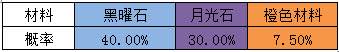 做一件橙装+40需要180天,那么此时已经开了600*6=3600个箱子,得黑曜石3600*0.4*8=11520,得月光石3600*0.3*4=4320,4种橙色材料消耗了1种,其他3种各3600*0.075=270。如果要做紫色的珍宝,这些材料足够再做5件紫色珍宝到+40,但是如果要做橙色珍宝,由于橙色材料限制,只能做3件20多级的。