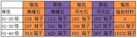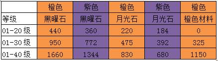 下面说下紫色珍宝和橙色珍宝突破需要的材料数量,由下表可以看出制作紫色珍宝和橙色珍宝需要的“黑曜石、月光石”数量相差并不多,但是主要是橙色材料极为难得。