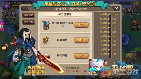 作为剑侠名人的独孤剑,即使穿越到《天域幻想》中,也不减剑侠本色,在游戏中独孤剑踏剑飞行,从剑侠“升级”成了剑仙,“御剑飞行”执剑江湖,还有各种炫酷无比的飞剑技能,大开大合,横扫对手!是不是很想立刻将独孤剑招揽到你的麾下?那么如何才能快速获取到这位远道而来S级神将呢?马上跟我来了解一下吧!