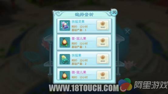 其中扶摇灵果、扶摇果可以增加人物经验,普·鼠儿果、微·鼠儿果可以增加灵宠经验。凡品灵果和神仙茶用于灵宠培养,金创药和雪莲精是药物储备。点击铜钱可以种植。