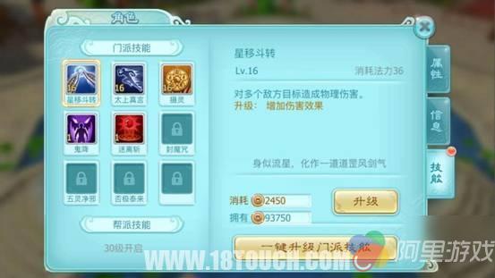 帮派技能和灵宠技能也需要铜钱升级。