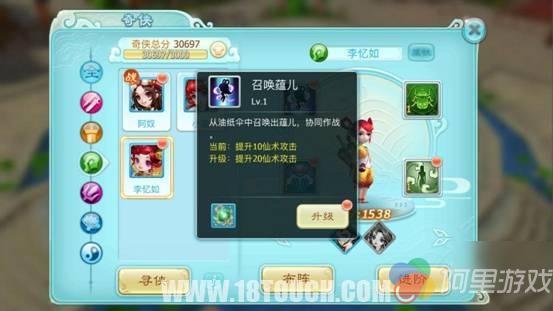 李忆如小朋友的特殊技能是召唤蕴儿。蕴儿在灵宠中是80级携带的召唤兽,可以在战斗中协同作战。其他三个技能是蚀天、烟水还魂、五气连波。