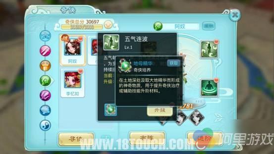 首先介绍阿奴,阿奴的特殊技能是御风术,此技能可以攻击多个敌人,并且造成伤害的同时降低对方物理防御和仙术防御。其他三个技能是五气连波、烟水还魂、刃风壁。