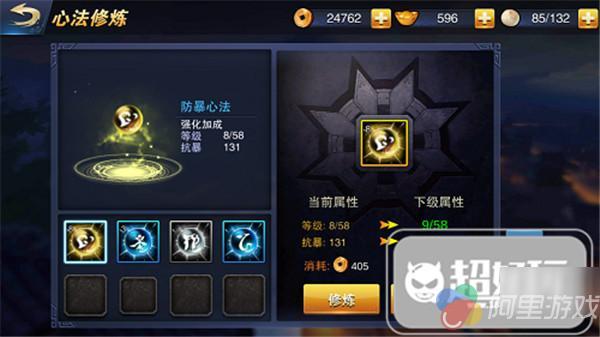 已经装备的心法还可以通过修炼的方式进行升级培养,修炼需要消耗心法残卷和金币,前者既可以通过江湖中的据点战和奇遇任务获得,也可以通过心法抢夺。因此玩家千万不要忽视了江湖玩法中的奖励,那些资源在各个养成系统中都有着极其重要的作用。