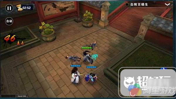 战斗时,战斗界面显示在战斗过程中当前的连击数、剩余时间、暂停按钮、关卡要求、我方阵容的生命值以及技能招式的冷却时间等等。玩家可选择手动操作,自动操作两种战斗模式。手动模式下,玩家可自动控制侠客的大招释放和当前侠客的技能释放。