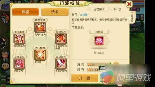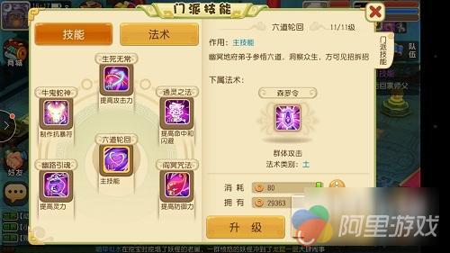 森罗令:土系群伤,判官笔:单攻,可减速敌方;阴阳眼:附加洞察状态;黄泉咒:夜间伤害增加,减敌方魔法;鬼迷魂:几率迷魂,持续伤害且几率嘲讽;还阳术:复活,且增加攻击但防御减少。