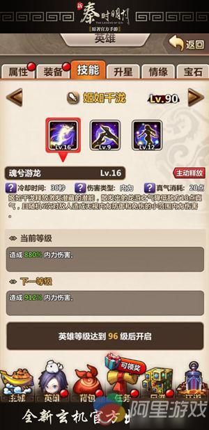 “姬如千泷释放激发潜藏的潜能,散发出的龙游之气降低敌方10点真气,且随机6次对敌人造成无视内力防御和免伤的小范围内力伤害。”