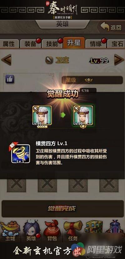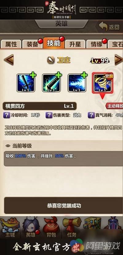 觉醒完成后卫庄即可获得全新的觉醒技——横贯四方。该技能释放过程中吸收其所受到的伤害,并且提升横贯四方的技能伤害与伤害范围。