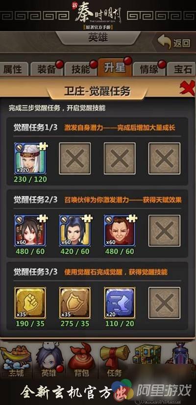任务一:收集120个卫庄信物,酒馆、禁地、奇遇、神秘商店也均有机会获得。信物集齐后消耗200万铜币即可进入下一环节。