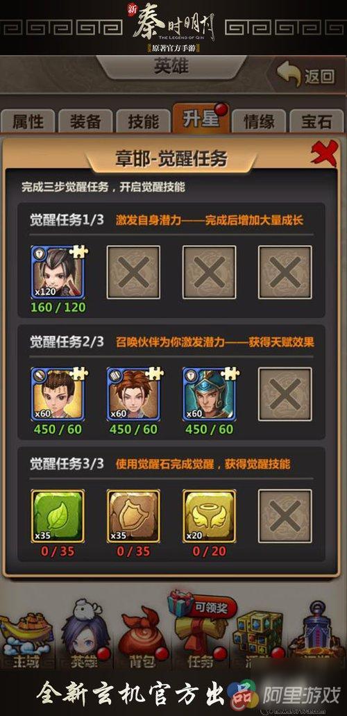 要觉醒章邯首先要完成三个觉醒任务,任务完成后即可开启觉醒。