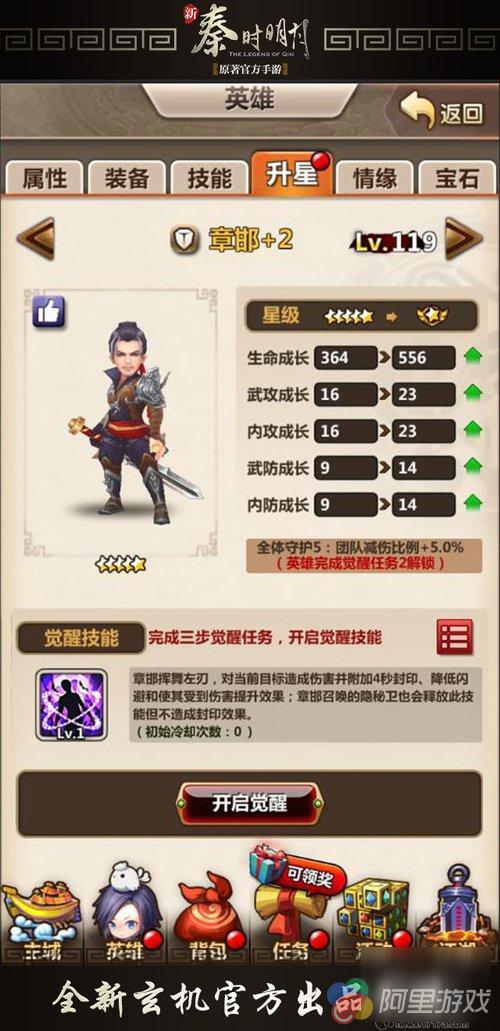 当英雄五星并且等级达到70级时,便可在【升星】界面中开启觉醒任务。
