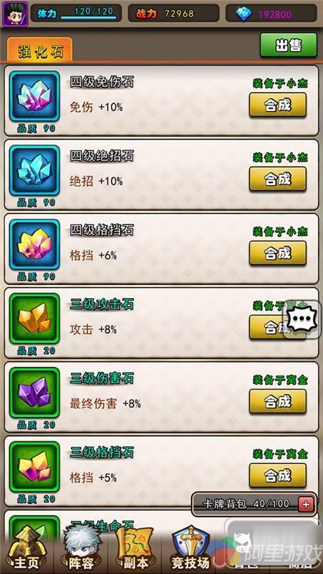 攻击石:可为玩家提供攻击比例加成(如初始攻击1000,攻击石+10%,则最终攻击为1100)