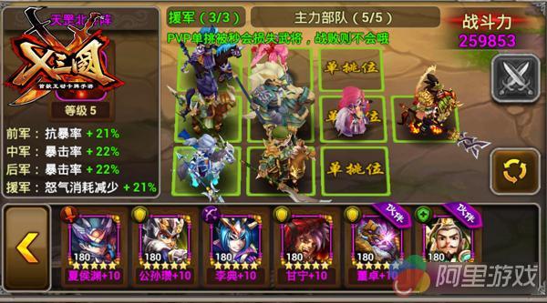 在火力层面则是充分利用马超集怒气快的特点,将马超的怒气消耗减少培养至39%。遇见敌人后,马超迅速积攒怒气,开战不久就能释放大招“铁骑冲锋”,39%的怒气消耗减少保证马超怒气值能迅速释放下一个大招,让敌人一直处于恐惧状态。
