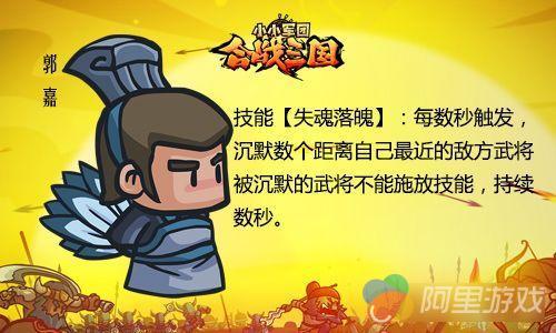 荀彧的好基友,由荀彧及程昱举荐给曹操,官拜祭酒。才识超群,屡献奇策,尤受曹操器重和信任。郭嘉的技能为沉默,4星后能稳定沉默4个武将,张飞张三爷这么威猛的汉子遇到了也要吃瘪。但如果主公要主要培养郭嘉的话,队伍中一定要先培养一队尖刀队。