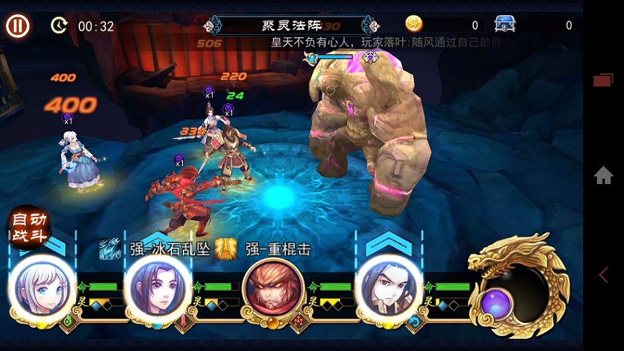 聚灵法阵地狱三倍的难点在于:BOSS技能里面附带中毒状态(只要毒性状态骷髅头叠加到X3那是会立刻死亡的)。后排英雄只要进入中毒状态,不超过2回合就被毒死。所以这里我们要做的就是用于小雪的变身技能来在中毒前预防中毒状态或者在中毒后驱散中毒状态。(难度是普通的就不介绍了正常是可以过的)。