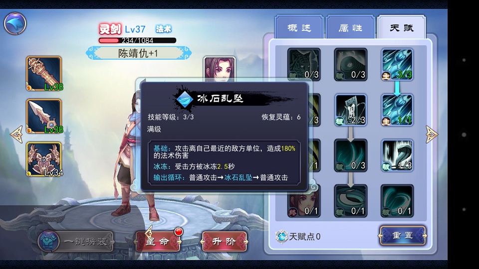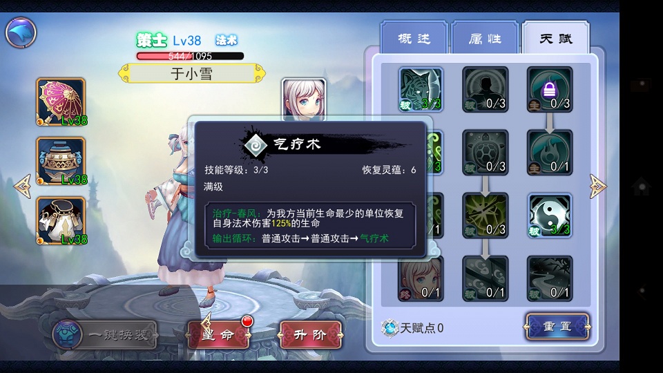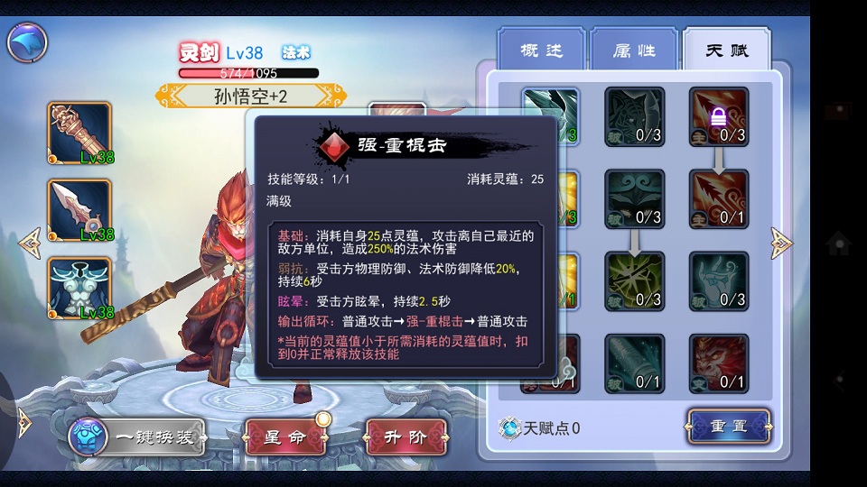 天赋里面悟空跟靖仇分别点出击晕跟冰坠 ,小雪则点出加血还有满血回灵(因为这里我们需要她的尽快变身驱除中毒状态),而李世民则点出巨像等加肉体系的天赋,输出毕竟不是他的活,作者喜欢点出治世跟厉行,毕竟他加被动治疗跟提升队友输出能力算是光环一种吧。