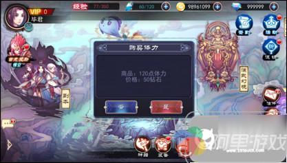 玩家还可以通过花费钻石购买体力,每次购买获得120点体力。玩家每日可以购买体力的次数与VIP等级有关,VIP等级越高可以购买体力的次数越多。