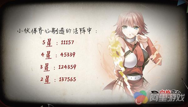 除了以上这些数据,究竟有多少人成功的建造出威力巨大的五星法阵呢?答案是11157!相比起动辄数十万的低级法阵,拥有五星法阵的血裔可谓是幸运儿了!要问五星法阵究竟有多强大?相信他们已经有所领略,适当的法阵足以起到改变战局的作用!当然其他血裔也不用气馁,我们还有机会成为欧洲细作的~