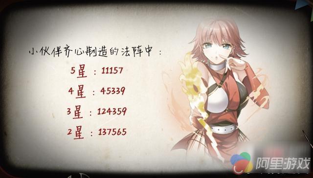 除了以上这些数据,究竟有多少人成功的建造出威力巨大的五星法阵呢?答案是11157!相比起动辄数十万的低级法阵,拥有五星法阵的血裔可谓是幸运儿了!要问五星法阵究竟有多强大?相信他们已经有所领略,适当的法阵足以起到改变战局的作用!当然其他血裔也不用气馁,我们还有机会成为欧洲细作的~