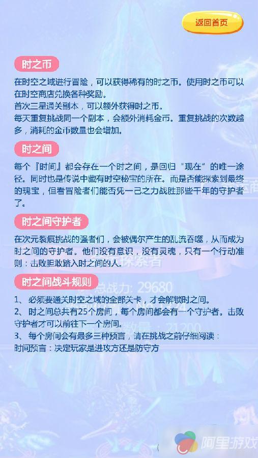 在时空之域里,玩家必须通过其中的25个时之间,打败每一个时之间当中的守护者,在收集到一定数量的时之币之后回到现在。虽然看似是一个简单的过程,其实这中间又隐藏着许许多多的“时间规则”。