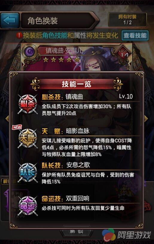 此次新推的光暗系少女安琪儿,职业牧师,拥有“镇魂曲”必杀技。拿到这张卡牌的血裔们可以利用其怒气提升的力量,对敌人带来致命性的伤害效果。并且,其“暗影血脉”天赋技承载了暗影的庇护,使得自身COST降低4点,必杀所需的怒气降低15%,让其队伍中自带暗属性队友血量增加8%,提升全队战斗力。最后说道安琪儿的命运联结,除了有强力奶妈觉醒·灵儿,还有御姐幻天姬,所以命运技也是实用又强大!