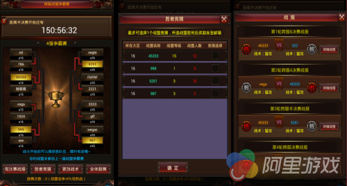 每周二为本服淘汰赛,将根据区服分组的具体情况决出本服战盟的前两名(8个区跨服)或前四名(4个区跨服)参加各自区服分组的跨服争霸赛;跨服争霸赛历经四天,于周六决出全服战盟霸主;报名的战盟所有成员会自动参与战斗。