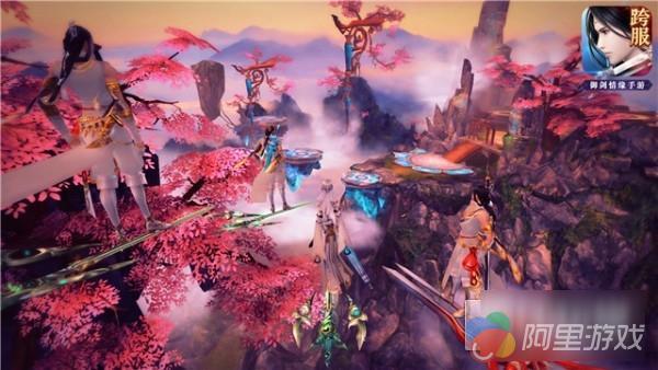 在新版游戏的活动中选择“天下会武”玩法即可进行跨服匹配,战场于每日的11:00至23:30开放,开始战斗后,在场玩家会被随机分为红蓝两方,通过采集战旗,占领据点斩获积分。同时在全新高空场景“浮黎仙境”玩家们可以自由飞仙,不受任何拘束与众角色激战高空。除了跨服战玩法之外,拥有强悍的属性加成和华美的造型战场装备也将登场。
