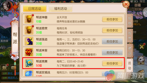 玩游戏,还是要玩帮派,玩帮派,当然要参加帮派战! 御剑情缘最激情玩法,帮派竞赛将在下周二晚8点40激情开启。 玩法规则说明 帮派竞技活动开启前提:服务器等级≥55级 服务器等级查询方法:点击头像→点击经验条右侧“i”→说明信息最下方 一、帮派竞赛战斗及积分说明: