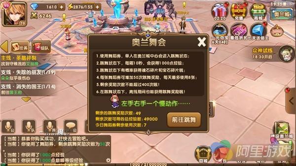 这次更新后,大家会在活动列表发现一个新的活动——奥兰舞会。这个活动只要角色达到55级,全天都可以参与。使用舞蹈券后,在奥兰城中心跳舞就可以获得丰厚奖励!