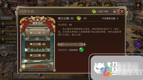 在该玩法中,该副本分为20级、40级、60级、80级四个等级段开放,其等级越高的副本则经验越位丰富,每一等级段副本每天都可以挑战3次,而每次挑战需要消耗20点体力。